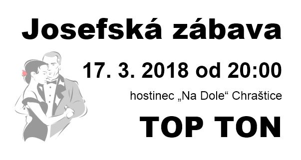 V sobotu 17.3.2018 se o 20:00 hodin v hostinci "Na Dole" koná tradiční Josefská zábava. K tanci a poslechu bude vyhrávat oblíbená kapela TOP TON.