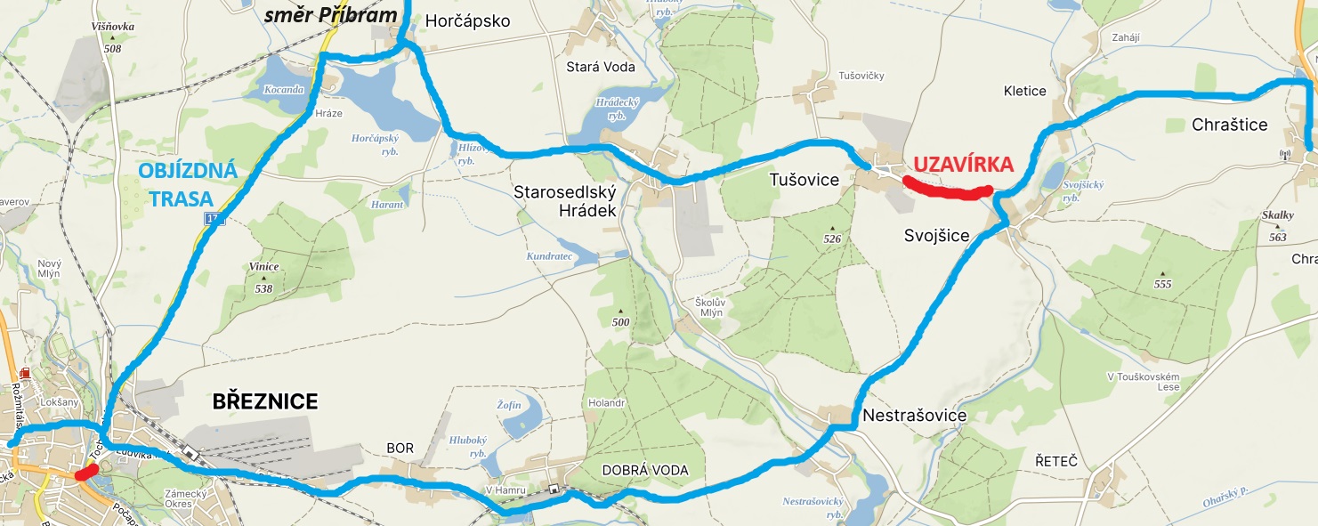 B: Chraštice – Svojšice – Březnice.