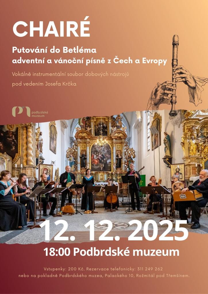 Účinkuje: Vokálně instrumentální soubor dobových nástrojů CHAIRÉ PŘÍBRAM pod vedením uměleckého vedoucího Josefa Krčka.