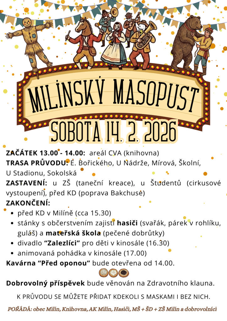 Poté projde průvod obcí a na vybraných místech budou zastavení (scénky, tanec).